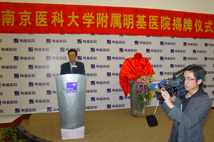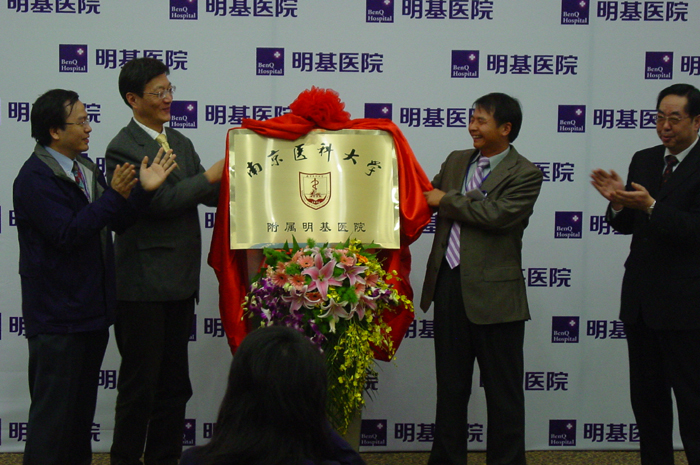 仪式上,王心如副校长宣读了《关于同意南京明基医院为南京医科大学附属医院的决定》。许仲梓副主席、陈琪校长、明基医院董事长雷辉以及明基医院执行长江明洲共同为附属医院揭牌。