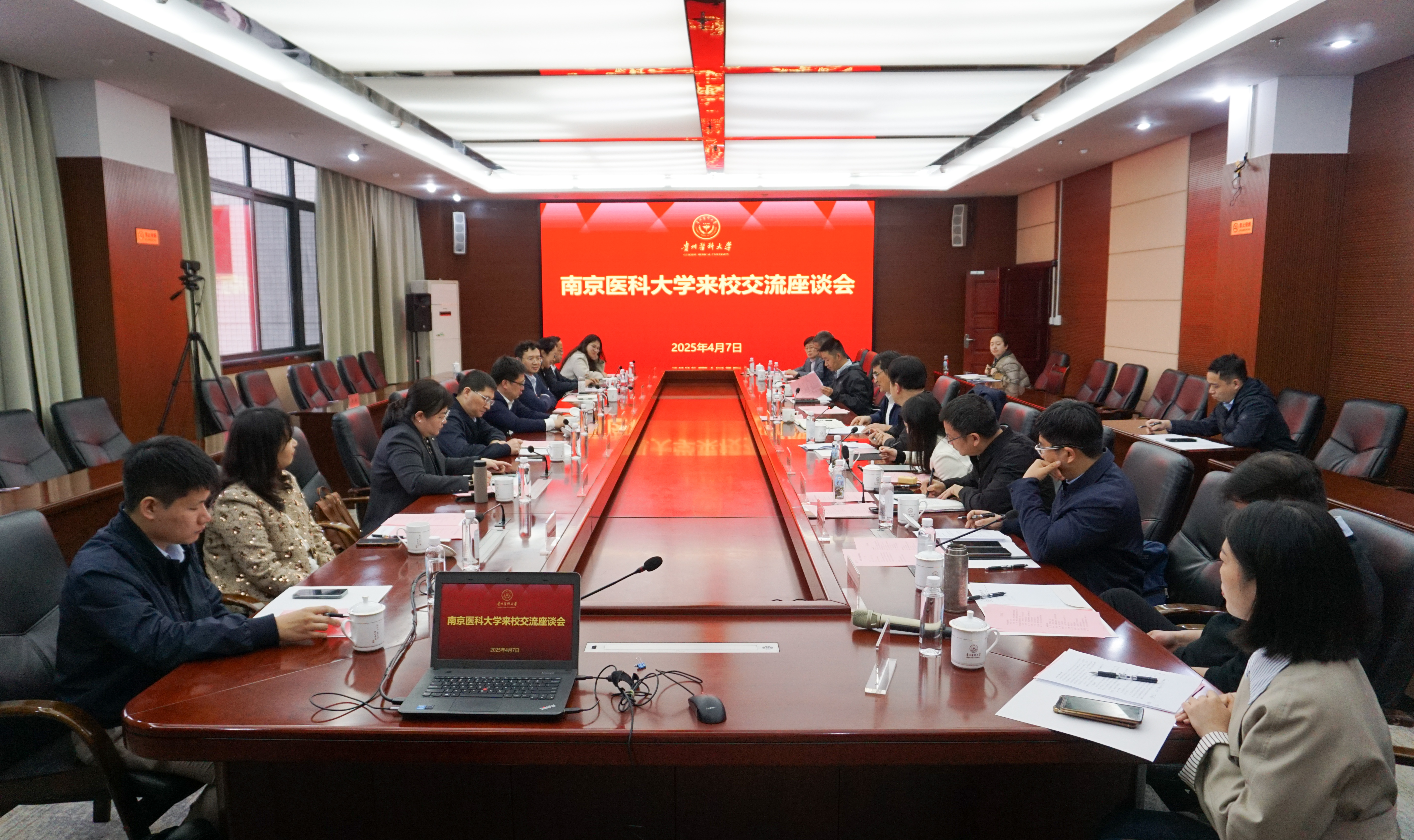 会上,洪峰副校长向胡志斌校长一行表示欢迎。他指出,南京医科大学与贵州医科大学始终以服务国家卫生健康事业为共同使命,在长期办学实践中紧密协作、互促共进。近年来,双方在医学教育改革、科研协同创新及公共卫生实践等方面持续深化联动,形成了协同发展的良好格局。期待双方以此次调研为契机,进一步凝聚合作共识,赓续协作传统,共谋发展新篇,为服务健康中国战略、助力区域卫生健康事业提质增效注入更强动能。