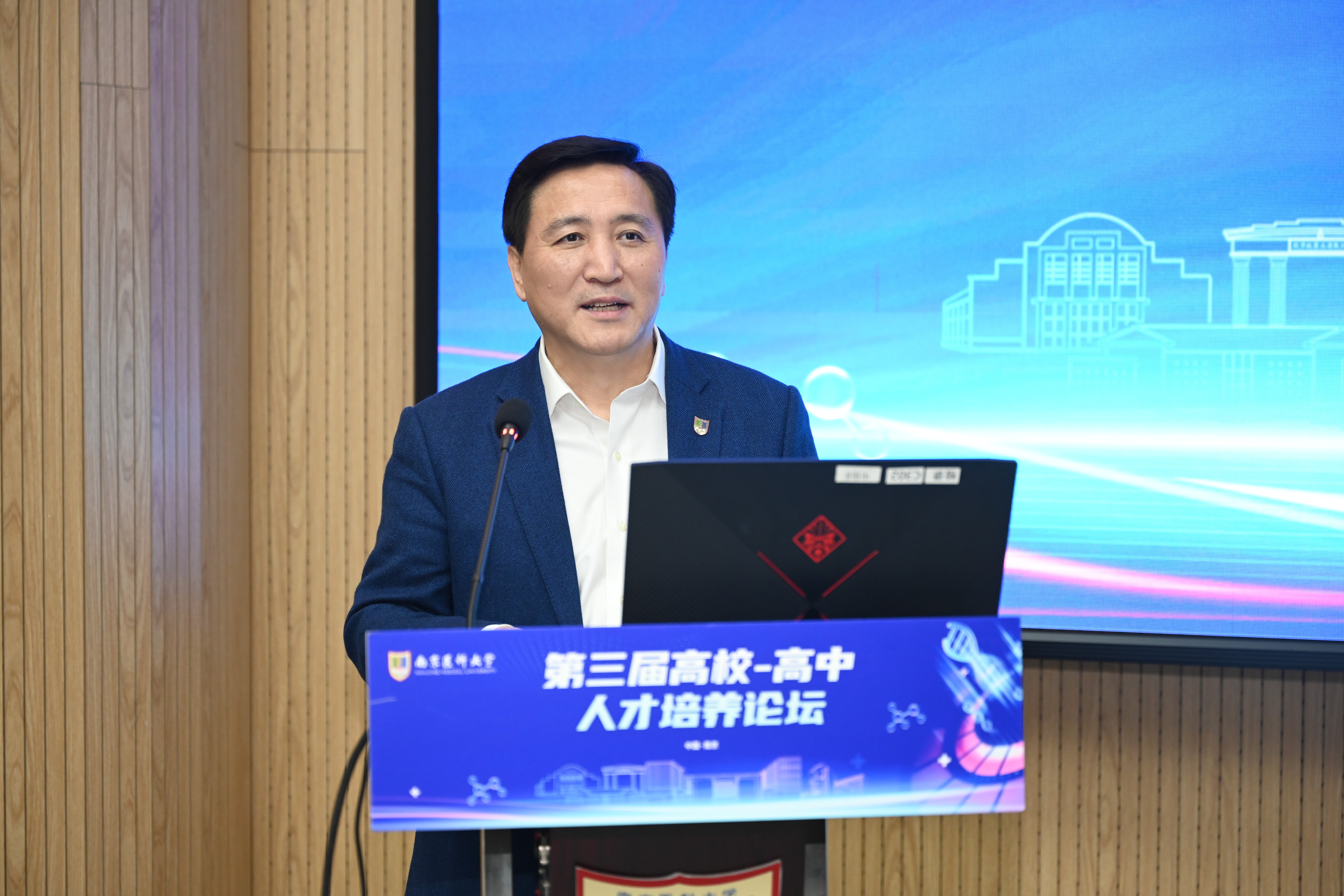 兰青书记对莅临论坛的中学领导表示欢迎和感谢。他指出,教育、科技、人才三位一体是社会发展的根本推动力。本届论坛聚焦“人工智能”,将对新时代医学人才的培养起到推动作用。同时,我校常州校区的投入使用,将为同学们的成长提供优质条件。学校愿与各高中携手,以新医科建设为着力点,以人工智能创新为纽带,为国家培养出更多精医学、懂科技、善创新的栋梁之材。