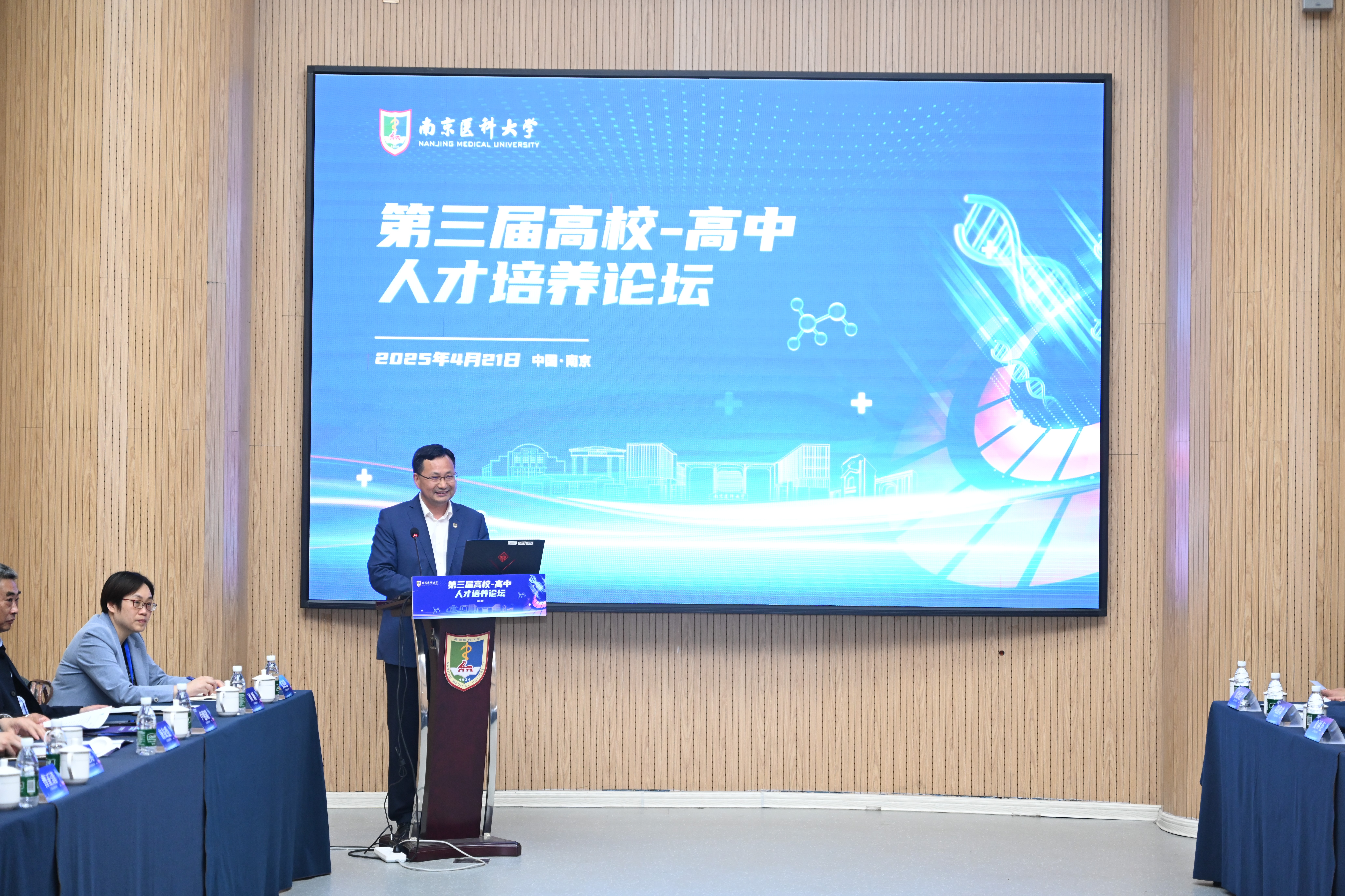 4月21日,我校第三届高校-高中人才培养论坛在江宁校区举办。本届论坛聚焦人工智能赋能教育教学,省内29所中学领导代表受邀莅临,共同探讨人工智能时代背景下的医学人才培养。校党委书记兰青,党委常委、副校长沈瑞林,党委办公室、常州校区管理委员会、学生工作部、教务部、生物医学工程与信息学院负责人,各学院分党委(党总支)书记、副书记出席论坛。论坛由沈瑞林副校长主持。
