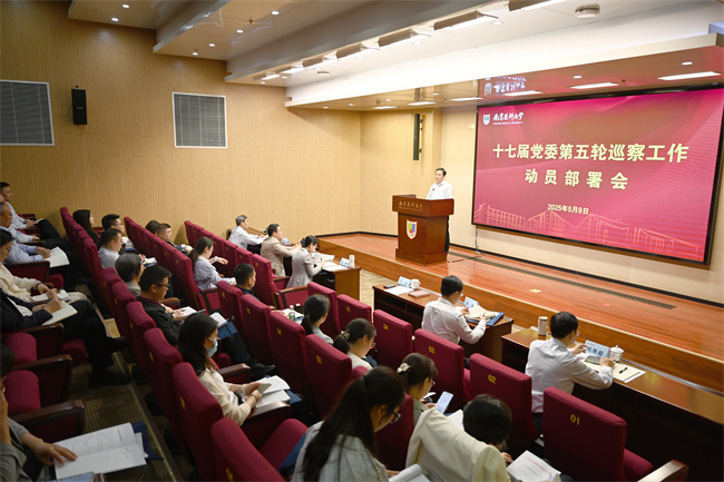 5月9日下午,我校召开十七届党委第五轮巡察工作动员部署会。校党委书记、党委巡察工作领导小组组长兰青出席会议并作动员讲话。校党委副书记徐珊,纪委书记、派驻监察专员李坚,党委巡察工作领导小组全体成员,党委第一、第二巡察组成员、第五轮被巡察单位党组织书记、联络员,相关单位主要负责人参加了会议,会议由李坚书记主持。
