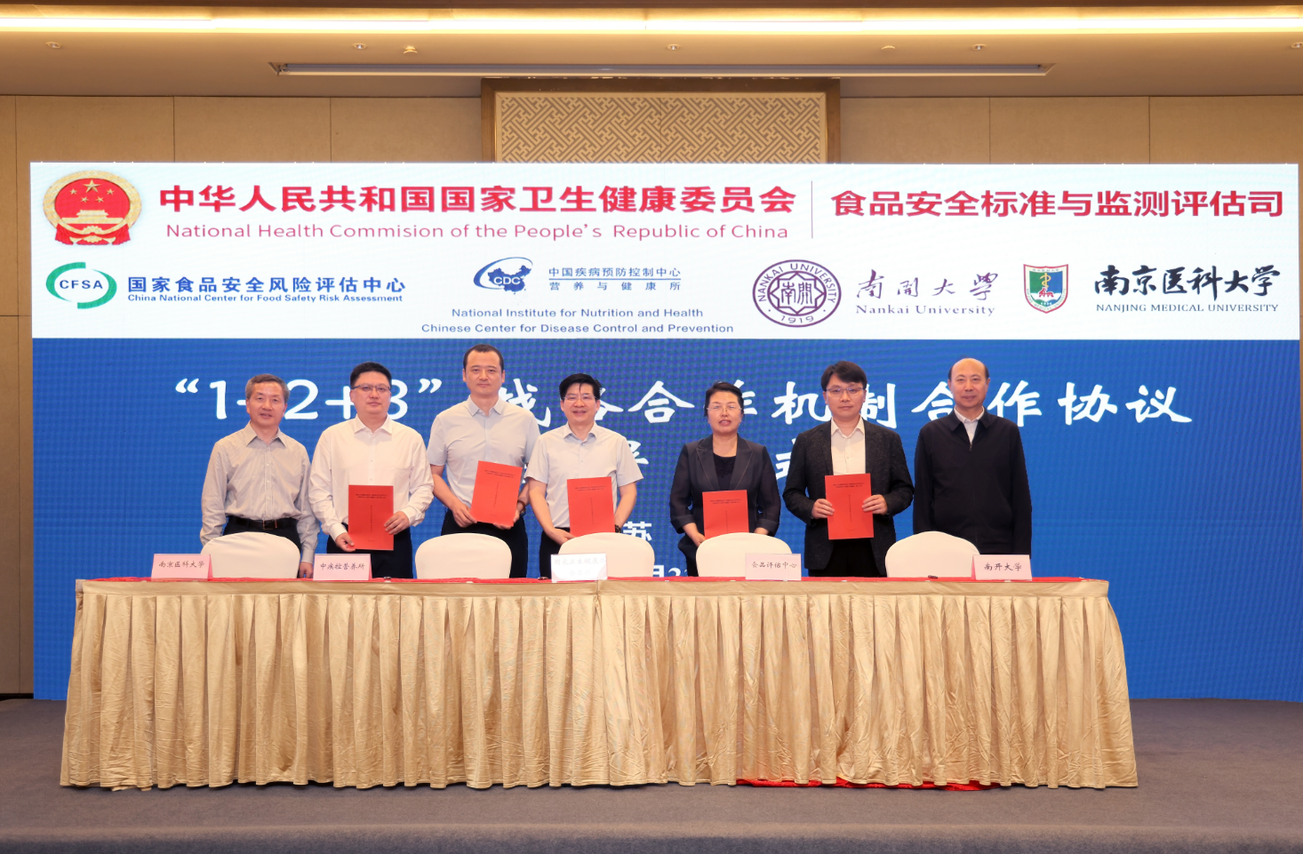 会上,胡志斌校长代表学校,与国家卫生健康委食品司、国家食品安全风险评估中心、中国疾病预防控制中心营养与健康所签署合作协议,我校正式成为国家卫健委食品安全与营养健康“1+2+8”战略合作机制成员。