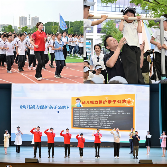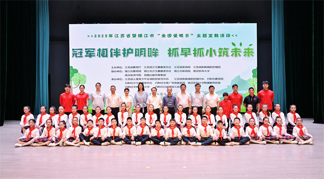6月4日,在第30个“全国爱眼日”来临之际,我校参与协办和承办的2025年江苏省“全国爱眼日”主题宣教活动在丹阳市举行。本次活动以“冠军相伴护明眸,抓早抓小筑未来”为主题,关注全省儿童青少年普遍的眼健康。省教育厅二级巡视员李金泉,省卫生健康委员会副主任、省疾控局局长周明浩,省体育局副局长肖爱华,镇江市人民政府副市长武鸣,校党委副书记徐珊等领导出席主题宣教活动。省市相关政府部门负责人,第四临床医学院、南京医科大学眼科医院负责同志,以及部分中小学、幼儿园的师生和家长代表共同参与了此次活动。活动全程采取网络直播形式向全社会播出,在线观看人数达65.4万人次。