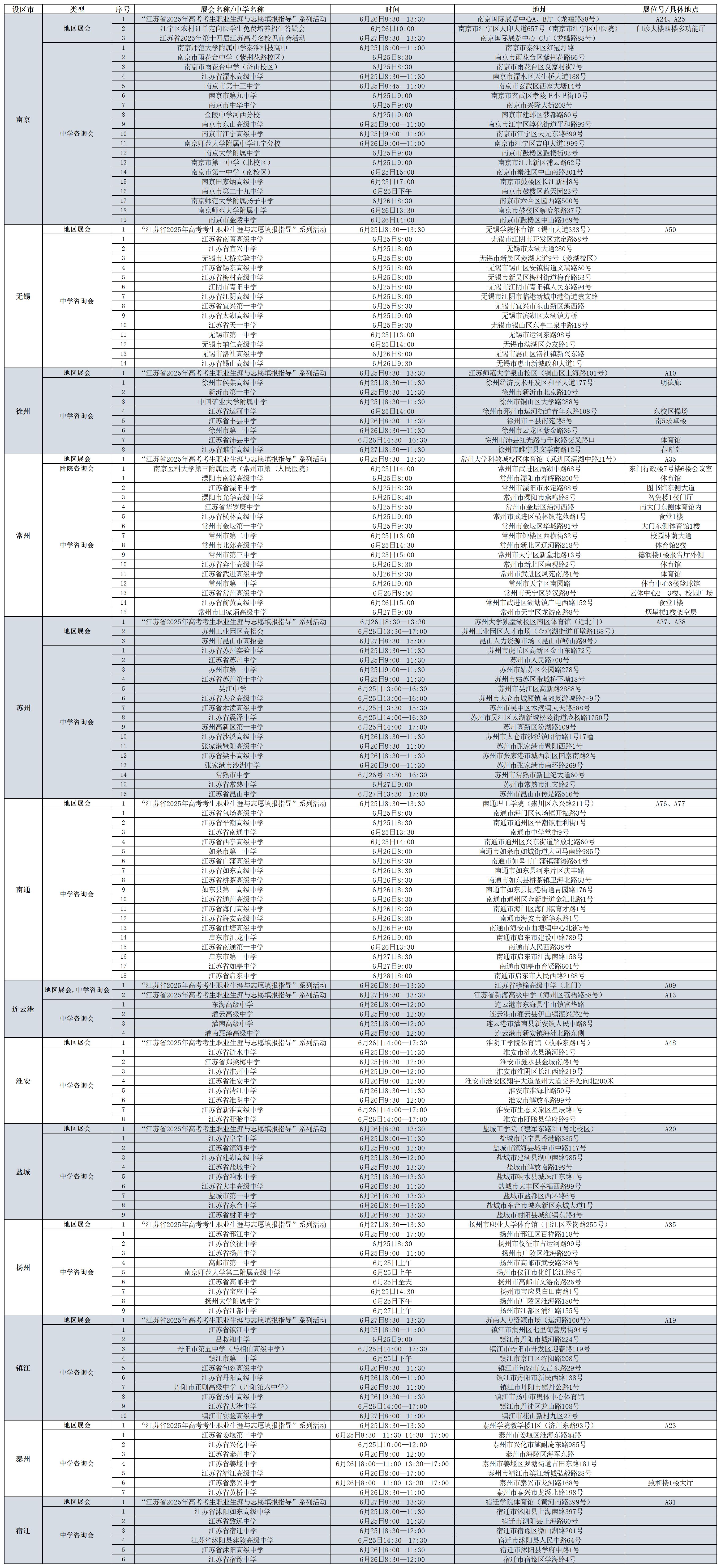 南京医科大学2025年招生咨询会一览表