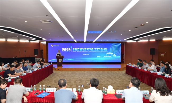 7月7日,我校2025年科技管理专项工作会议在江宁校区德馨楼C212举行。校长胡志斌,党委副书记、副校长夏有兵,党委常委、副校长岳国峰、沈历宗出席,相关职能部门、学院和附属医院负责人及科技管理部门负责人参加会议。会议由沈历宗副校长主持。