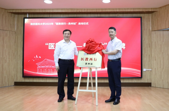 7月5日至7月11日,校党委书记兰青,校党委副书记、一附院党委书记丁强,副校长夏彦恺率团赴贵州,开展我校2025年度“医教西行—贵州站”专项行动。校党委办公室、第一临床医学院、公共卫生学院相关负责人和师生代表,第一附属医院、第二附属医院、附属南京医院、附属儿童医院、附属妇产医院14位专家共同参加本次行动。本次行动团队在贵州省卫生健康委员会的支持下,先后奔赴遵义、施秉、黎平、福泉、贵阳等地,开展了大型惠民义诊和健康科普活动,将优质医疗资源送至百姓身边。