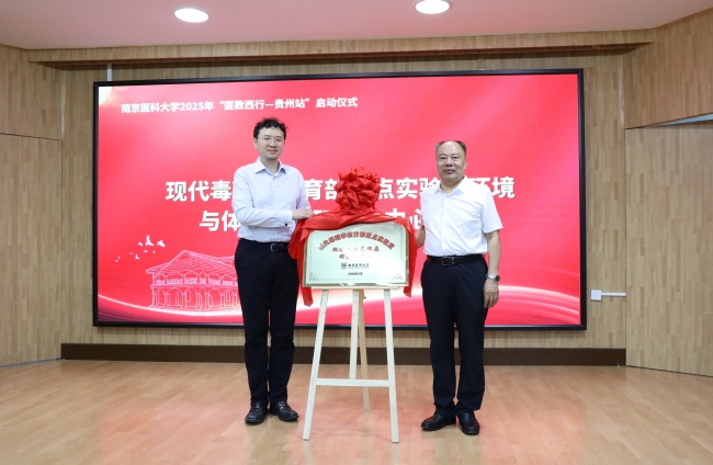 会上,校党委书记兰青与遵义医科大学党委书记刘文共同为南京医科大学“医教西行—贵州站”揭牌,副校长夏彦恺与遵医附院院长余昌胤共同为南京医科大学“现代毒理学教育部重点实验室环境与体表健康研究分中心”分中心揭牌。