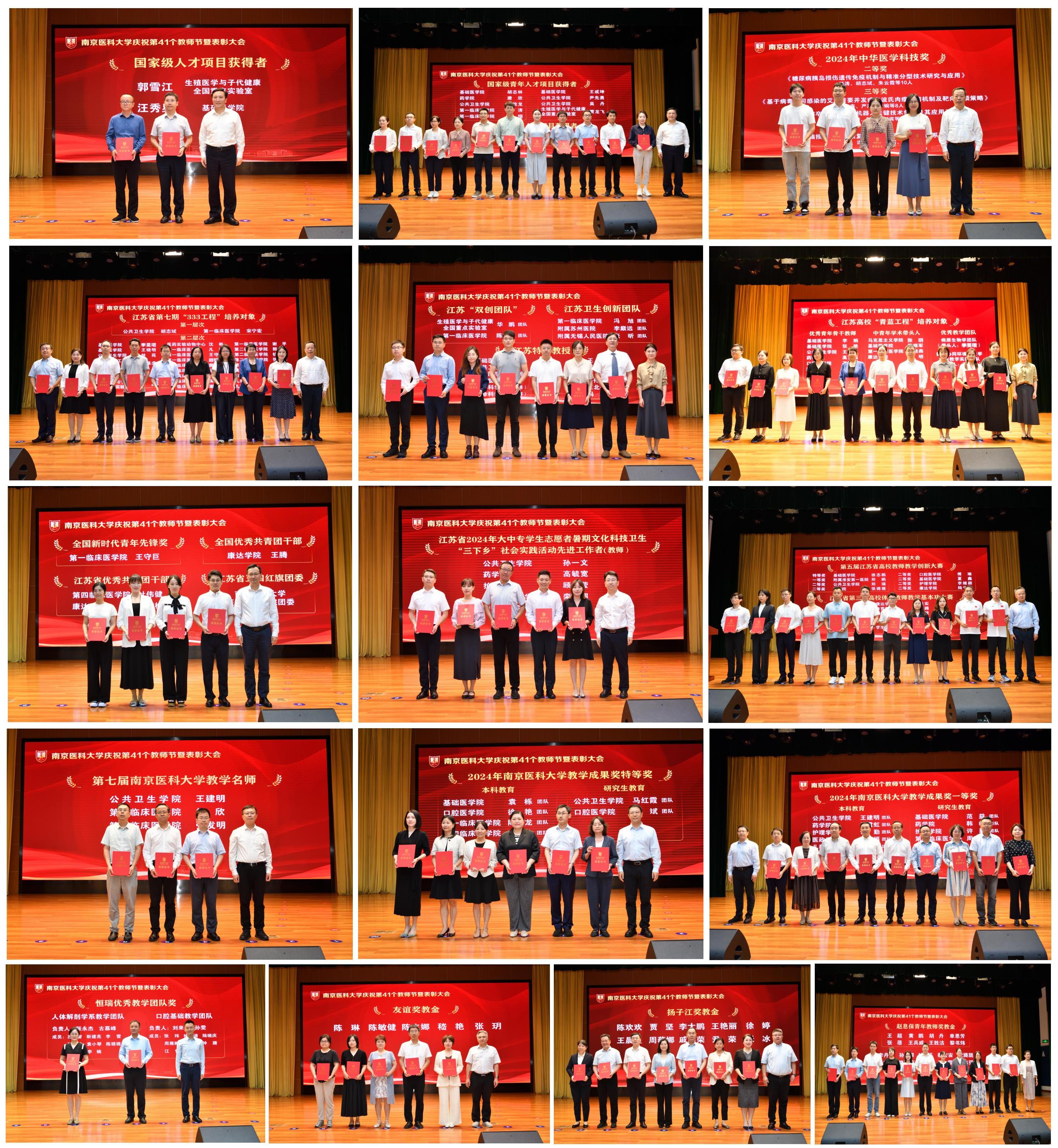 在“奋进篇”中,大会表彰了近一年来在教育教学、科技创新、管理服务等工作中取得突出成绩的先进个人和集体,包括国家级人才项目获得者、省部级科技奖获得者、全国新时代青年先锋奖获得者、江苏省“333工程”培养对象、“青蓝工程”、江苏“双创团队”和江苏特聘教授等。校领导、奖教金设立单位代表分批向获奖个人和集体颁发了荣誉证书。