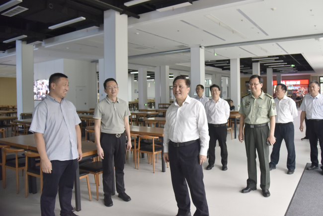 9月29日下午,在国庆、中秋“双节”来临之际,校党委书记兰青带队开展节前安全检查,实地察看重点场所安全措施落实情况,并就进一步做好节日期间校园安全稳定工作提出明确要求。党委副书记、副校长夏有兵,党委常委、副校长沈瑞林、岳国峰,相关职能部门、学院负责人参加检查。