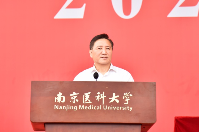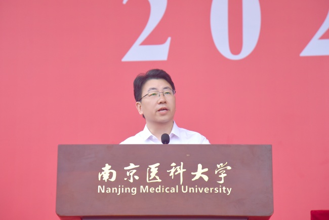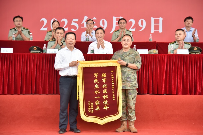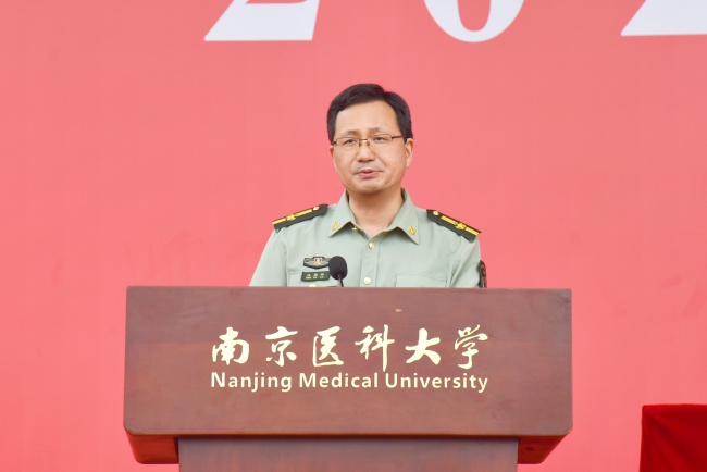 党委书记兰青作军训总结讲话。他代表学校向圆满完成15天军训任务的2025级本科生新生表示祝贺,向精心施训的全体承训官兵及全程陪伴、悉心服务的各位老师、辅导员和后勤保障人员致以衷心的感谢;向圆满完成军训任务、用汗水书写青春担当的全体2025级新生,致以热烈的祝贺和亲切的慰问。他指出,军训是同学们踏入南医的“第一课”,是锤炼意志、砥砺品格的“大熔炉”,更是传承精神、厚植情怀的“必修课”,纪念中国人民抗日战争暨世界反法西斯战争胜利80周年阅兵精神的“校园践行”,新生以规范动作、坚定意志诠释了“博学至精,明德至善”的校训。他希望同学们一要永葆爱国情怀,坚定理想信念;二要弘扬优良作风,锤炼高尚品格;三要勤奋刻苦学习,练就过硬本领;四要恪守医者初心,践行医者使命。同时,珍藏这段难忘的军训记忆,以此为新的起点,继承和发扬人民军队的优良传统,以更加饱满的热情、更加昂扬的斗志、更加坚实的步伐,投身到精彩的大学生活中,努力成长为有理想、敢担当、能吃苦、肯奋斗的新时代卓越医学人才,为护佑人民健康、推动医学事业发展贡献青春力量。