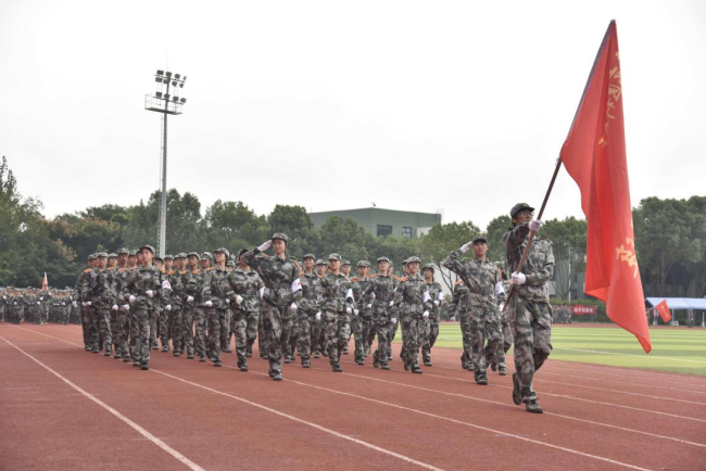 9月29日下午,我校2025级新生军训成果汇报暨表彰大会在江宁校区田径场举行。中国人民解放军31619部队负责领导、南京警备区战备建设处处长王大鹏上校、高淳区人民武装部部长周炜上校,校领导兰青、夏有兵、徐珊、岳国峰、李坚,校党委常委、宣传部部长王春晖,全体承训官兵、学校中层干部、带训辅导员、退役在校大学生士兵教官以及2025级全体参训新生参加大会。大会由党委常委、副校长沈瑞林主持。