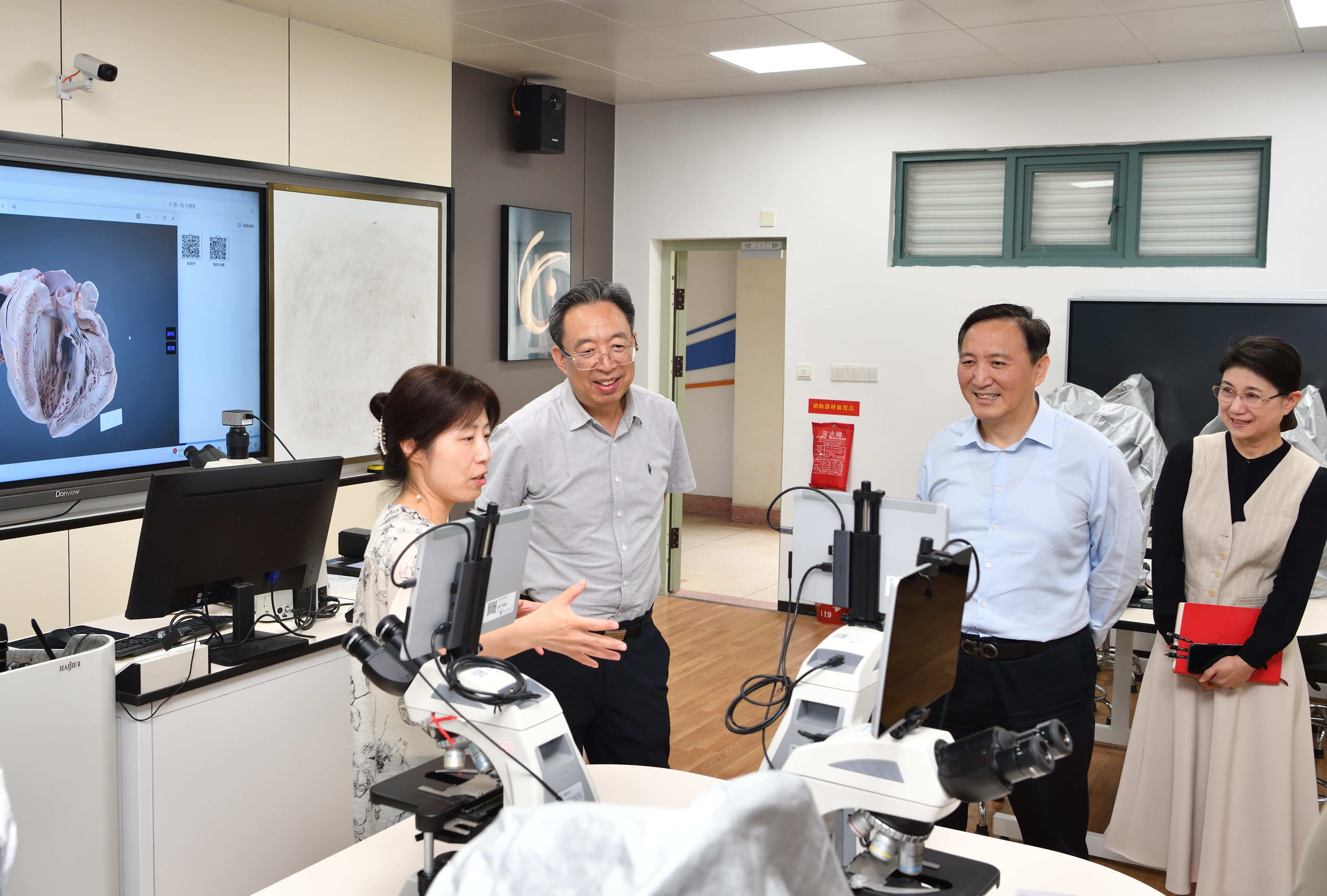 课前,校党委书记兰青接待了葛道凯主任一行,陪同参观调研了我校基础医学国家级实验教学示范中心、虚拟仿真实验教学中心、医学伦理馆。