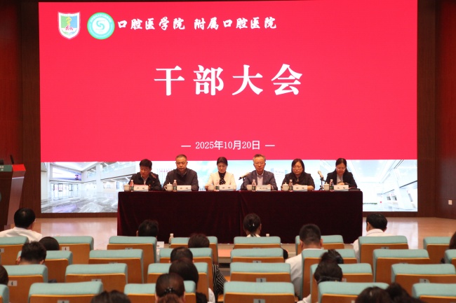 10月20日下午,我校口腔医学院、附属口腔医院召开干部大会。会上,宣布了学校党委关于口腔医学院、附属口腔医院领导班子调整的决定。校党委副书记徐珊,校党委常委、副校长沈历宗,校党委常委、组织部部长、统战部部长孙波出席会议。口腔医学院、附属口腔医院处级领导班子成员、中层干部、党支部书记、护士长代表等参加会议。会议由沈历宗副校长主持。