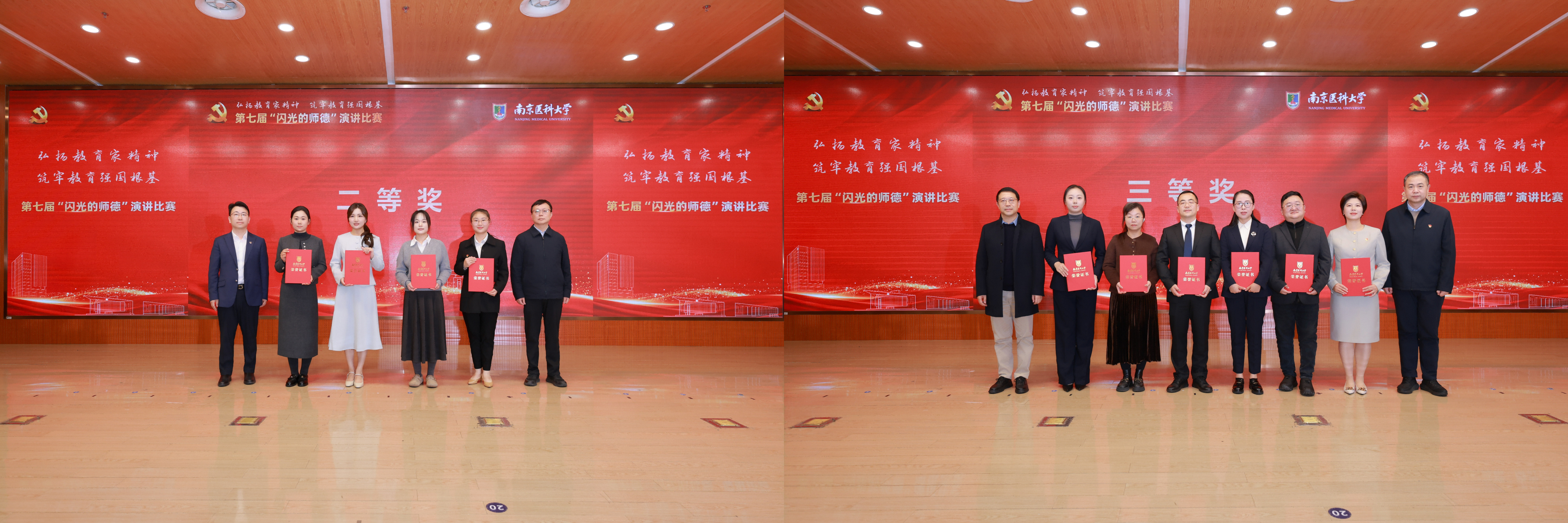 11月21日上午,我校第七届“闪光的师德”演讲比赛在至诚楼报告厅举行。校党委书记兰青,党委副书记徐珊,党委常委、副校长沈瑞林,党委常委、副校长岳国峰,党委常委、纪委书记、江苏省监委派驻南京医科大学监察专员李坚,党委常委、宣传部部长王春晖,党委常委、组织部部长、统战部部长孙波,教师代表、全国模范教师高兴亚,相关职能部门负责人出席并担任决赛评委。学校中层干部、思想政治理论课教师、辅导员、教师、学生代表参加活动。比赛由校党委副书记徐珊主持。