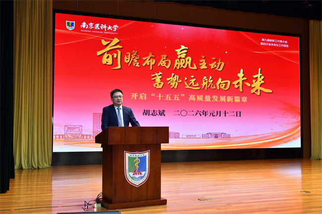 大会在庄严的国歌声中开幕。校长胡志斌以《前瞻布局赢主动 蓄势远航向未来》为题作行政工作报告,全面总结了“十四五”时期学校在党建引领、立德树人、人才培养、学科建设、治理体系、师资队伍、科技创新与成果转化、附院发展、社会服务等方面取得的主要成绩,向广大师生医护员工的辛勤付出表示由衷感谢和崇高敬意。报告还通报了“十四五”时期学校财务收支情况,对“十五五”时期学校在改革攻坚与综合治理、学科建设、教育教学、科技创新与成果转化、附院发展与临床提升、区域融合与国际合作、幸福校园与支撑保障等方面的总体工作思路做了介绍。希望全体教职医护员工以“闯”的精神、“创”的劲头、“实”的作风,奋力推动特色鲜明的“双一流”医科大学建设,谱写学校高质量发展更加璀璨的明天。