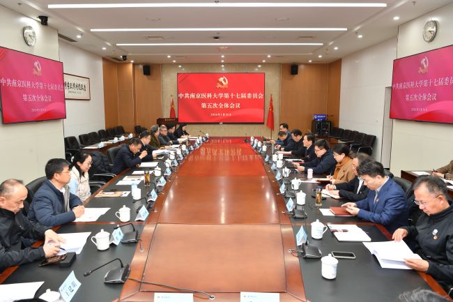 1月26日下午,校党委在德馨楼A218会议室召开中共南京医科大学第十七届委员会第五次全体会议,审议2025年党委工作报告和纪委工作报告。全体在校校领导、全体党委委员出席会议,校纪委委员代表列席会议。会议由党委副书记、校长胡志斌主持。
