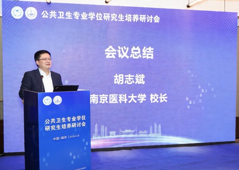 南京医科大学校长胡志斌作总结,他指出,本次会议精准对接健康中国、教育强国战略需求,研讨内容聚焦主题、针对性强,后续工作组将梳理会议成果,重点推进培养共识完善、实践基地建设、医教协同深化三项工作,将研讨成果转化为提升人才培养质量的具体举措。