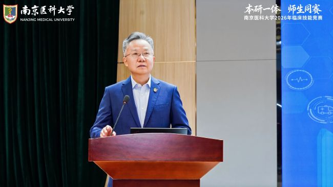 4月25日,我校2026年“本研一体 师生同赛”临床技能竞赛在附属泰州人民医院举行。江苏省学位与研究生教育学会会长袁靖宇,泰州市卫生健康委员会副主任朱俊,校长胡志斌,党委常委、副校长沈历宗,附属泰州人民医院党委书记顾宏伟,大赛仲裁组专家、裁判、标准化病人老师,各参赛单位师生、领队及校内相关职能部门负责人参加活动。开幕式由沈历宗副校长主持。